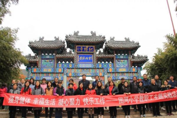 为了丰富团河小学教师的业余生活,促进教师之间的交流,增进彼此间的友谊,增强学校凝聚力,和个人对学校的认同感、自豪感,营造和谐融洽的团队氛围,校工会于11月2日组织全体教职工到怀柔红螺寺进行以“强身健体 幸福生活 凝心聚力 快乐工作”为主题的实践活动。