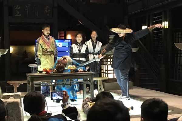 通过影视还原现场,通过现场感知影视制作的玄幻,在还原影视拍摄现场,揭秘影视拍摄过程的实践活动中让学生们自导自演完成一段剧本的拍摄。从过程中体验导演、摄像、演员、场记等职业角色,了解影视特效道具的制作和使用,分析影视特效画面是如何通过拍摄手法完成的,既提升了学生们语言组织和运用能力,又挖掘了学生的表演才能。
