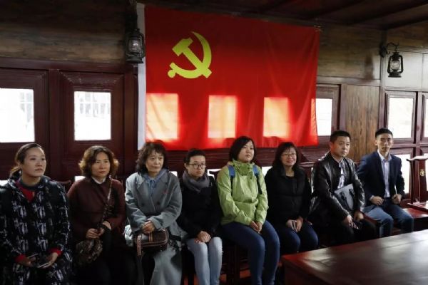 党员们登上了“中共一大红船”,我们仿佛看到了代表们在此开会的情景,这艘红船负载着中华民族的美好憧憬,成为中国革命的红色摇篮。讲解员还为党员们讲解了“一大”到“十九大”的光辉历程,让我们感受到了革命的曲折和伟大。