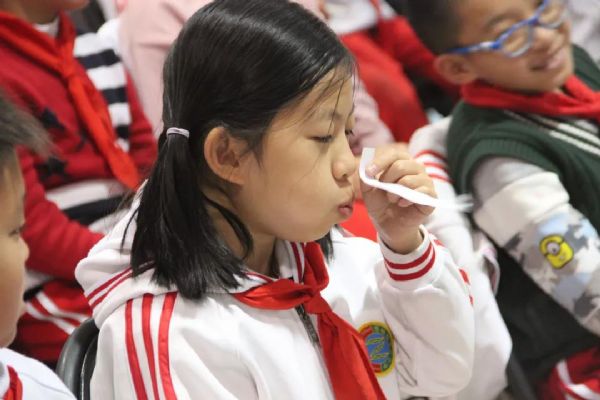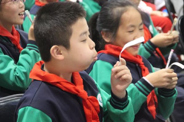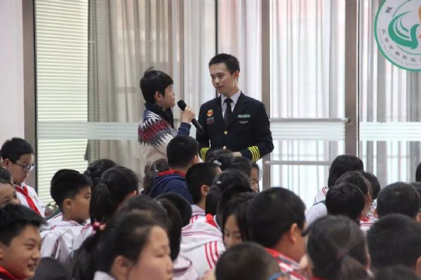 航普中心的詹李强教官通过三段航空科普知识视频,将大家带入了浩瀚的航空知识海洋。在观看的过程中,教官不时地向同学们提出问题,同学们兴奋地举手回答,与教官进行现场互动。在教官的带领下,孩子们很快就学会了飞行学员礼,并且用这种特殊的礼仪互相问候。接下来,他们用一张简单的纸条做物理实验,体验气流的变化。“招飞体能测试”让孩子们跃跃欲试,教官告诉孩子们飞行员是一群集综合素质与一身的优秀群体,从小培养自己的学习能力、身体素质、心理素质是尤为重要的,希望同学们加强训练,长大后圆自己的飞天梦想。