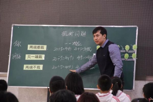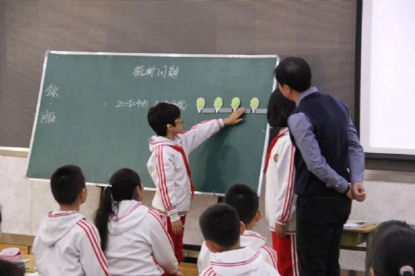 接着宋为老师献上了一节非常精彩的展示课《植树问题》。这节课打破了常规的教学模式,不以知识为目的,重在培养学生的能力,注重利用教学素材在学科教学中育人。他引导学生围绕三种植树方案进行研讨,借助几何直观理解间隔数和棵数的一一对应关系,渗透建模思想。精彩的课堂不仅赢得了阵阵掌声,还引发了与会老师对于数学广角内容该如何教学的深入思考。