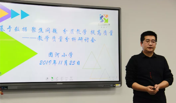 教学质量是学校的生命线,教学质量的好与坏,是衡量一所学校办学水平的重要标准。为进一步查找教学工作中的问题和不足,明确方向,制定措施,提高教学质量。11月25日下午,在各学科教研组组内进行质量分析研讨的基础上,团河小学举行以“基于数据 聚焦问题 分层教学 提高质量”为主题的学校层面的教学质量分析研讨会。