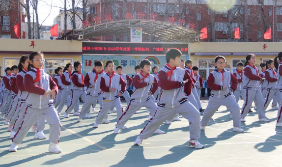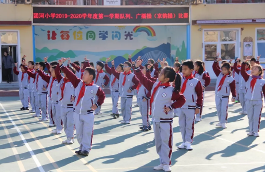 为全面贯彻素质教育方针,进一步贯彻落实《学校体育工作条例》的精神,丰富学生的课余生活,展示学校学生的风采,提高学生身体素质,引导师生做先进体育文化的传播者,促进学校校风、学风更加健康地发展,团河小学于2019年12月4日开展班级京韵操比赛。