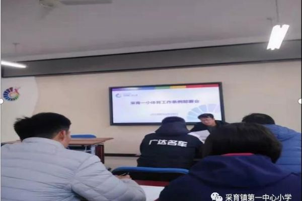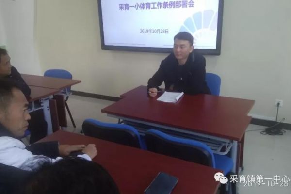2019年10月28日,采育一小体育工作会在小会议室召开,此次会议的内容主要是总结前一段体育工作,对学校体育工作条例的落实情况进行自查,参加会议的有郭俊淼主任,王脉斌主任及全体体育教师。