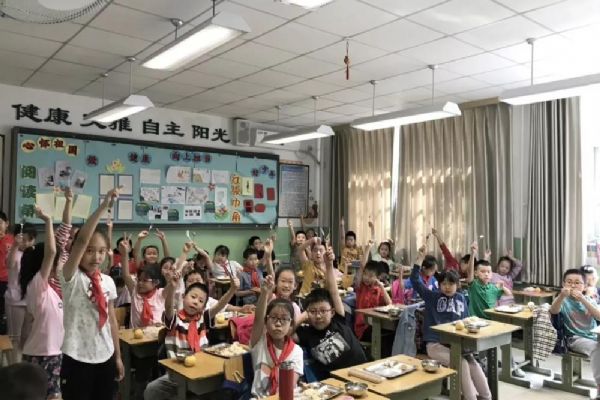 师生人人承诺:用餐不浪费粮食,自己带餐勺餐筷,少使用一次性餐具和餐巾纸。学校还鼓励师生自带手绢,在学校、家庭、社区做好垃圾分类,将环保作为生活新时尚,共同创造美好的家园。