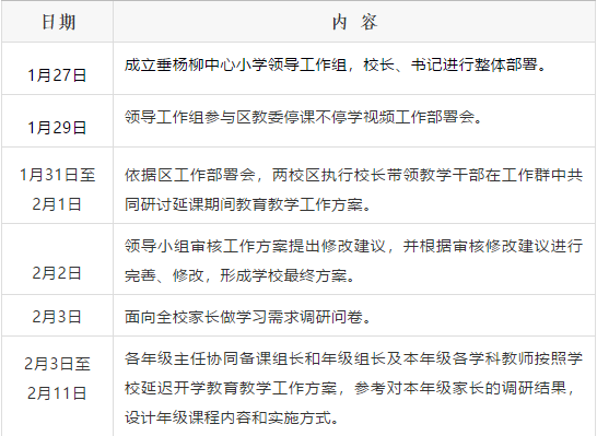 为了积极妥善应对突发新型冠状病毒肺炎疫情防控工作,全面落实学校、教师主体责任,切实做到守土有责、守土尽责、守土负责。依据市区及朝阳区教育系统延迟开学有关工作精神,垂杨柳中心小学将借助网络平台,为教师和学生建立教学和辅导的双向交流渠道,采取“教师导学、学生自学、家长助学”的方式,科学安排学生一日生活,指导学生在家开展学习,有效解决学生因疫情无法正常到校上课问题。