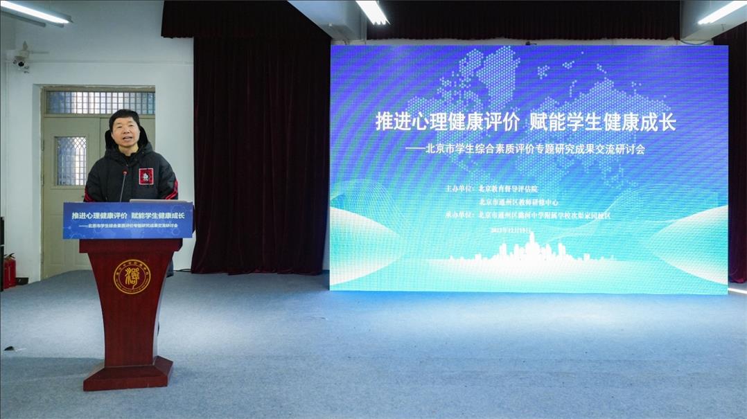 为贯彻有关教育评价文件精神,切实落实五育并举、立德树人根本任务,助推“双新”落地,全面实施综合素质评价,探索心理健康评价实施路径,提升教师评价素养和科研素养,撬动学生全面健康发展,2023年12月19日,“推进心理健康评价 赋能学生健康成长——北京市学生综合素质评价基地校专题研究成果交流研讨会”在潞河中学附属学校次渠家园校区举行。参加会议的专家和领导有:北京教育督导评估院副院长杜文平、基础教育督导评价所所长曹飞、副研究员邢利红,中心(分院)课程部主任李凯、潞河中学附属学校次渠家园校区校长商学芳。