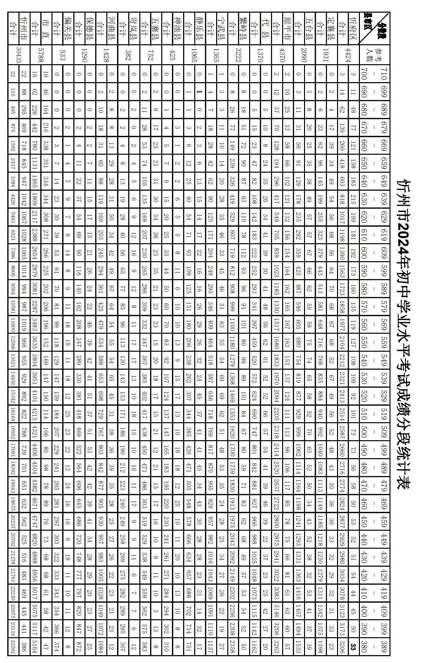 忻州市2024年初中学业水平考试成绩分段统计表今天正式出炉。