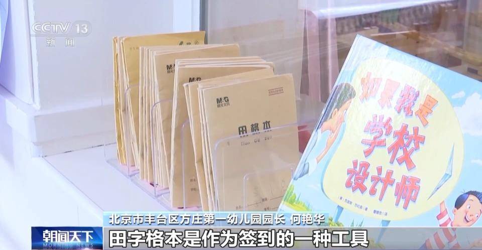 北京市丰台区方庄第一幼儿园园长 何艳华:学前书写准备,这种幼小衔接教育,对孩子来说,是必不可少的,但是我们又不是生硬去教,田字格本作为签到的一种工具,让孩子每天记录日期姓名,培养控笔能力,每一天画完的游戏故事,然后讲给老师听,可以锻炼他们的口语表达能力,包括他的思维能力。