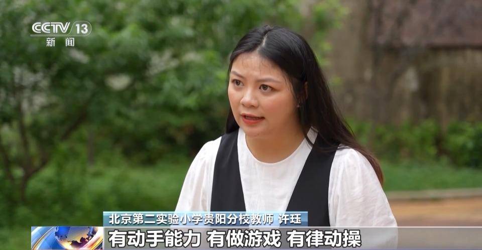 北京第二实验小学贵阳分校教师许珏:我们小学也提倡游戏化教学,让他们在课堂上有动手能力、有做游戏、有律动操,轻松地来学到知识。
