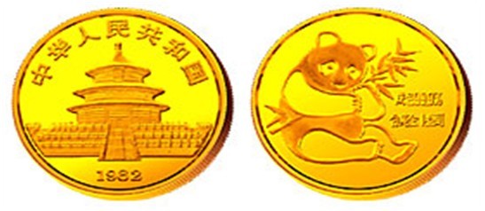 1982年中国熊猫纪念金币首次正式发行。借鉴于当时国际金银币的经验,中国应该推出一种题材相同,且每年连续发行的成套金币,中国人民银行决定采用世界闻名的中国大熊猫和北京天坛祈年殿作主题图案,当年熊猫金币发行1组4枚,规格分别为1盎司、1/2盎司、1/4盎司、1/10盎司。由于发行量在当时算比较大,系列产品也多,预计发行年限较长,考虑到法定货币的后期法偿等诸问题,有许多不同的意见和争论。为此,中国人民银行李葆华行长综合各方面意见,决定当年按计划发行熊猫金币,但是,币面暂不设货币面额。发行以后,再听取和搜集国内外各方面的反馈。从此,中国熊猫金币在世界开始闻名,并同时成为中国金币的看家产品。
