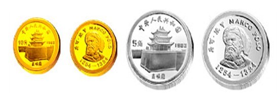 1983年中国首枚最小直径、最小重量的金币和银币诞生。这是直径为10毫米、重量为1克的马可波罗精制纪念金币;直径为15毫米、重量为2克的马可波罗精制纪念银币。1克金币和2克银币的生产成本比较高,压制过程中因币面小重量轻,会产生许多方面的技术和管理问题。 同年,1盎司普制熊猫金币获得世界硬币大奖赛“最佳金币奖”。