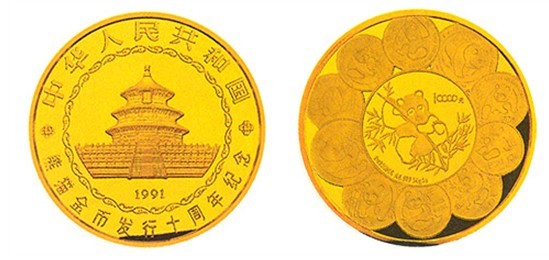 1991年为纪念中国熊猫金币发行10周年,中国人民银行发行中国20世纪最大金币——5公斤熊猫精制金币,仅10枚。 1992年中国古代科技发明发现第1组金银纪 念币问世。22克航海造船精制银币,获得由德国《德意志钱币杂志》组织的当年欧洲销售最佳纪念币大奖赛“最佳纪念币奖”。此币由沈阳造币厂谷英斌设计雕刻。