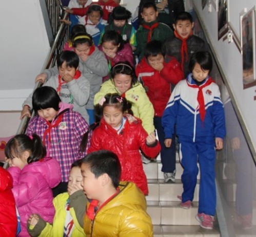 随着一声警报的拉响朝阳区左家庄第二小学全体师生在2013年3月30日开展了一次安全疏散演练。