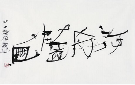 越过传统的笔墨技巧,精神直指书法的本源和深处,一种没有背离中国书法精神的新书法,就呈现在我们面前。具备传统书法的真实艺术意境:苍茫的、豪迈的、浑厚的、恣肆的、沉静的、雄霸的、纵横的、跳宕的、伟岸的、沉雄的、奇伟的、神异的,气象万千,应有尽有,从点线中蹦出,从空间中喷射出。目不暇接,遥不可攀,让人敬畏而望尘莫及。
