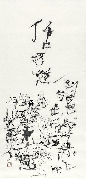 在太多的人看来,想当然地认为石虎先生的书法是画字。作为画家,石虎先生的书法没有染上画家习气,绝对保持了书法的书写性,肯定注入了作为画家的绘画元素,骨子里却是纯粹的书写,完全从汉字到书法,汉字更加具有艺术的可联想性,造型性更强,认读性退居其次。一次性疯狂得意推进是创作的根本,躲过了许多画家进行书法创作时对书写性的漠视,而且极力制造空间的造像性,我甚至认为石虎先生的书法创造性超过了绘画,书法的气息更透亮更有深度和高度。这是石虎先生作为书法家极其杰出超群的地方,也是我十分尊重他书法的地方。