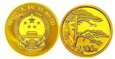 中国人民银行定于2013年8月8日发行世界遗产——黄山金银纪念币一套。该套纪念币共8枚,其中金币3枚,银币5枚,均为中华人民共和国法定货币。