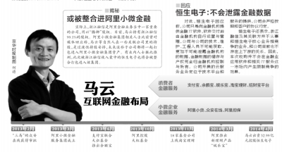 尽管余额宝、网络支付两方面受到银行施压,阿里巴巴董事局主席马云仍然继续扩展自己的金融版图。昨天,马云拟以33亿现金收购恒生电子,由此几乎“包圆”国内基金、证券、保险、信托等金融机构的IT系统,进而觊觎后台交易数据。除了在金融后端系统放出大招,阿里巴巴在前台产品端同样有所动作。也是在昨天,阿里巴巴掌控的招财宝公司在上海设立,意欲打造一个专门的互联网理财产品平台,开拓除了天弘基金之外的其他金融机构。