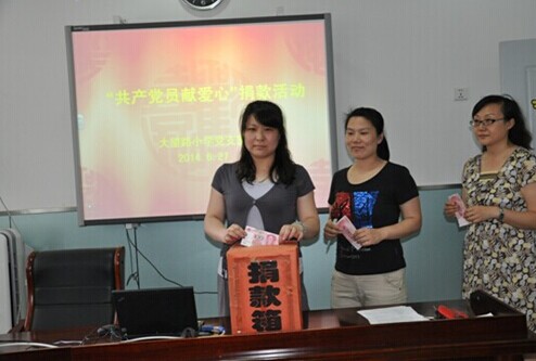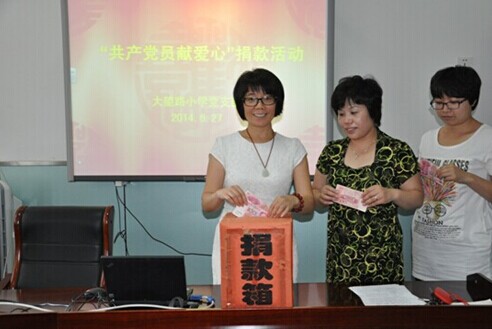 中国教育品牌网讯 2014年6月27日,北京市朝阳区大望路小学的全体教师,积极响应教育系统组织开展的“共产党员献爱心”捐款活动。在支部书记赵艳艳的带领下,广大党员和干部发挥了模范带头作用,广大教师积极参与,向有困难的群体伸出了援助之手,弘扬了团结互助的精神和扶贫济困的中华传统美德,增强了党组织的凝聚力和战斗力。