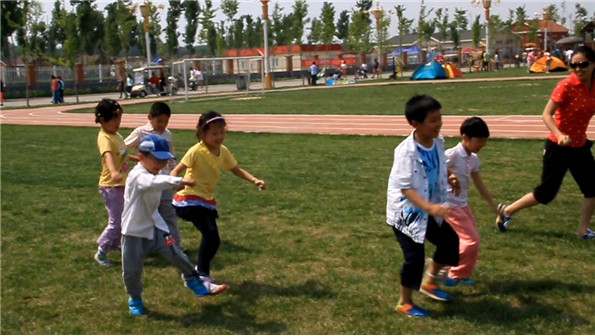 活动还设立了“村长”和“裁判”,公平公正地评比每一项活动。为了每个项目的顺利开展,家长们、王老师纷纷出力,有的帮助提前预定座位,有的带来了跳绳,有的带来喂小动物的青菜,有的准备好乒乓球和拍子,还有的准备好了奖品。正是大家的满腔热情、团结一致、相互配合、积极进取,促成此次活动的顺利开展。看,孩子们玩得多开心啊! 在“双人跑”活动中,两个孩子用跳绳把各自的一条腿绑在一起,随着一声哨响,两个孩子手挽着手,喊着一、二,一、二的节奏,一起奋力跑向终点;“托球跑”项目中,家长和孩子共同参与,孩子用乒乓球拍托着球,伴随着风声、加油声跑向家长,家长接过拍子,托起球,竭尽全力向终点冲去。周围的孩子们在欢呼,周围的鲜花在频频点头,好像是给孩子们和家长们加油!