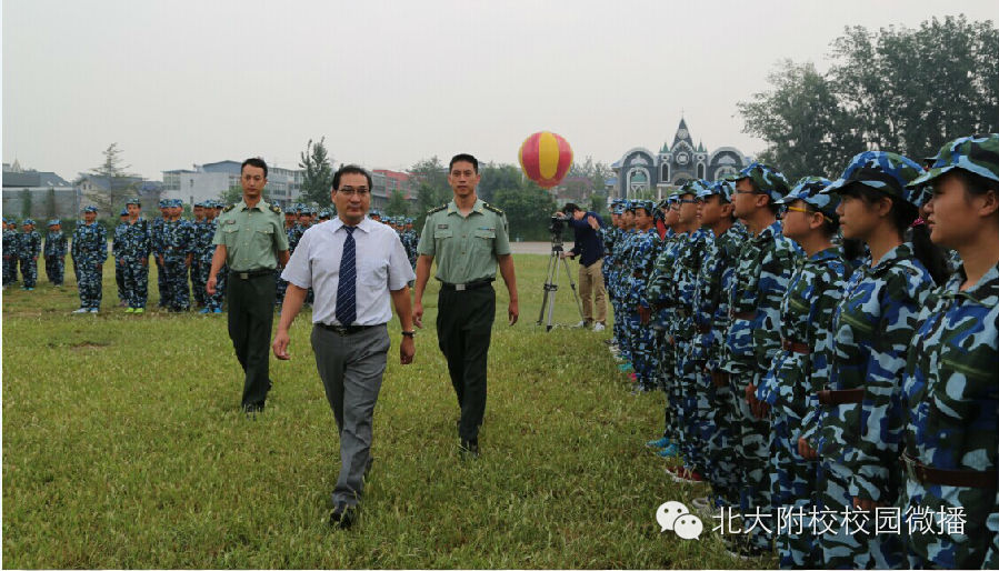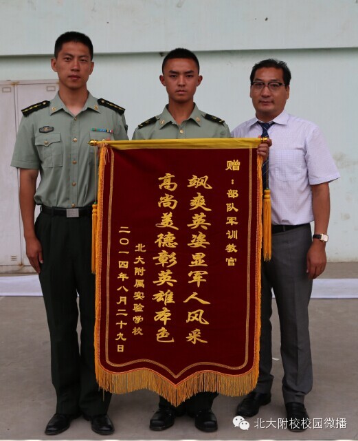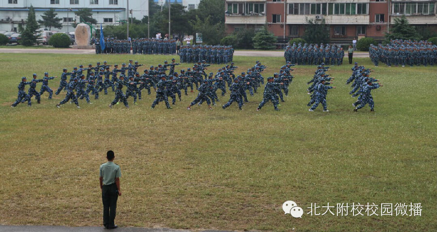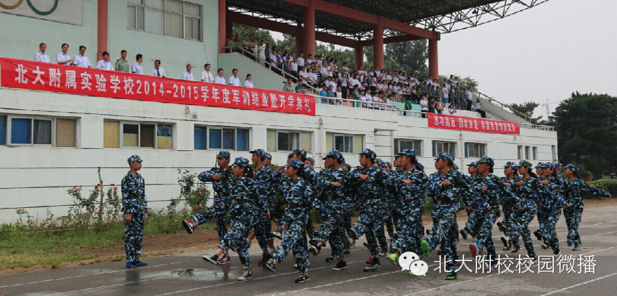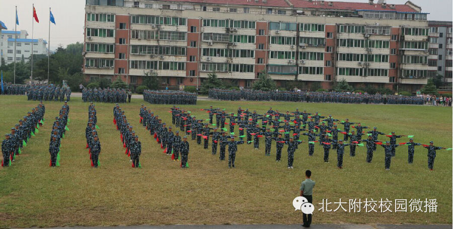 微讯(吴彩霞) 2014年8月29日早8点,我校举行2014—2015学年度军训结业暨开学典礼。大会由执行校长吴清林主持,校长董琦携全体领导班子出席参加。中国致公党中央委员会社会服务部李万通部长、丰台区公安局原政委耿飞政委作为特邀嘉宾出席典礼。庄严的国歌声拉开了大会帷幕,迎校旗、阅兵、分列式、方队表演,竞显我校优秀的学子风采。每年级的分列式,同学们迈着矫健的步伐,动作整齐,英姿焕发。尤其是旗语方阵、三声三相方阵和军体操方阵的精彩表演,让人震撼,赢得家长和师生阵阵掌声和喝彩声。