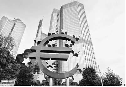 欧洲央行近日决定自9月10日起将所有利率全部降低10个基点,欧元区基准利率降至0.05%。图为德国法兰克福欧洲央行外的欧元标志