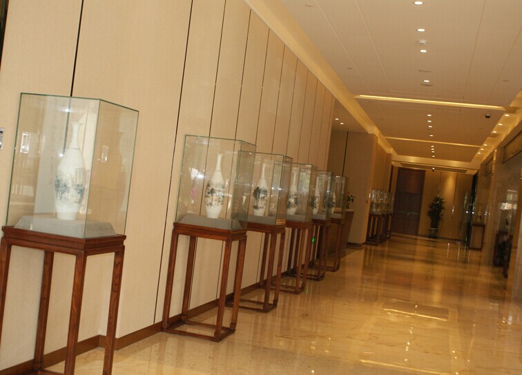 所有陶瓷艺术作品器型均用叶建新最新设计的“净瓶”器型做胎,喷白釉,白釉上彩绘《校园四季图》长卷中校园风光,绘画内容顶部题书法创作该画作内容的平白叙或诗词赋并落款。