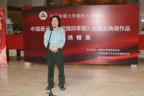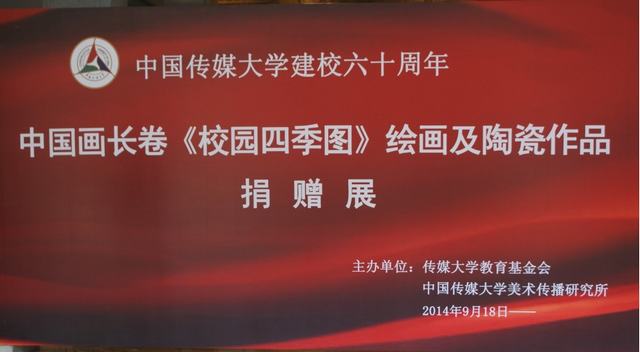 2014年9月18日上午,由中国传媒大学广告学院叶建新教授组织创作的中国传媒大学建校六十周年中国画长卷《校园四季图》绘画及陶瓷艺术作品捐赠展在学校新国际交流中心开幕。中国传媒大学党委书记陈文申、中国传媒大学校长苏志武、副校长吕志胜等学校领导以及来自业界的部分专家学者出席了仪式。
