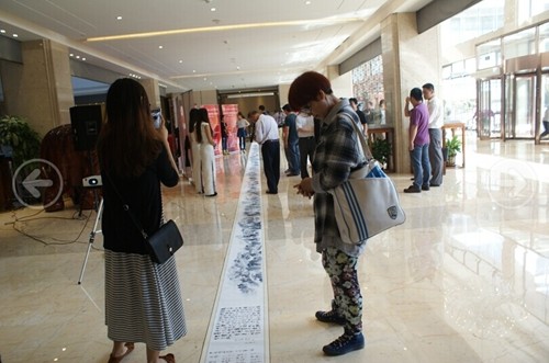 这是中国传媒大学历史上首次创作中国画长卷及陶瓷艺术品,作品全部捐赠给传媒大学教育基金会收藏,并在校庆六十周年之际隆重展出。叶建新教授等艺术家们历时四个月的创作,为中国传媒大学六十周年校庆增添了浓墨重彩的一笔。