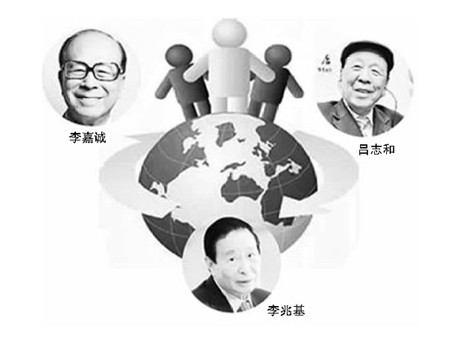 根据今年5月的数据,香港三大富豪中,长和系主席李嘉诚以294亿美元净资产居亚洲十大富豪之首,其次是恒基地产主席李兆基(净资产228亿美元),第三是银河娱乐主席吕志和(净资产211亿美元)。资料图片