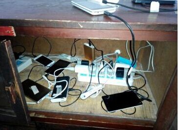 真实的情况是:丁老师的办公室里,3个插线板上,插了10来个正在充电的手机和充电宝……