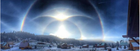 据英国《每日邮报》1月10日报道,美国新墨西哥州上空近日出现罕见“冰光环”现象,摄影师约书亚·托马斯拍到其壮观景象。当天,北极寒风继续席卷美国,引发美国数十座城市气温骤降。“冰光环”是一种光学现象,当气温下降时,悬浮在大气中的冰晶与光互相作用,在天空中形成各种各样的环弧。