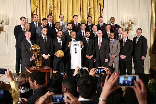 据NBA中国官网消息,美国总统巴拉克-奥巴马在白宫接见了上赛季总冠军圣安东尼奥马刺队,并祝贺他们夺得2014年NBA总冠军。