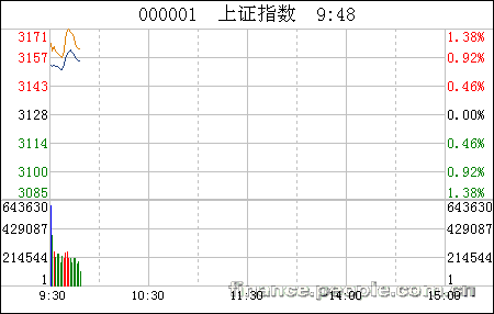 继周一沪市大跌之后,A股周二回暖,两市双双大幅高开,沪指开盘报3156.09点,涨27.79点,涨幅0.89%;深成指报11077.48点,涨114.34点,涨1.04%;创业板指报1703.93点,涨7.1点,涨幅0.42%。