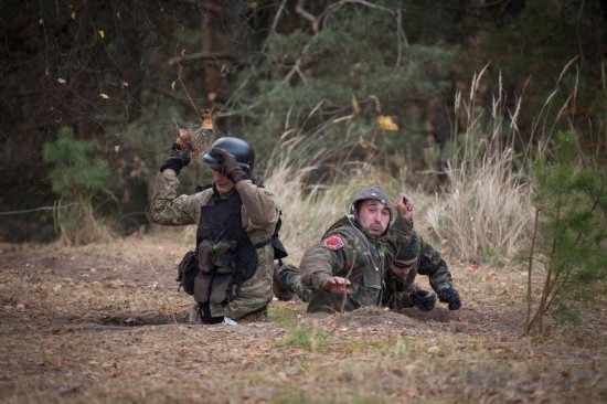 资料图:乌克兰新兵训练用枯树枝充当手榴弹。