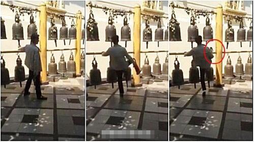 据泰国头条新闻报道,泰国网络又是一片讨伐中国游客的骂声,原因来自一个在清迈素贴山双龙寺拍到的视频,一名说普通话的华人游客用脚踢寺庙两侧悬挂着的铜钟,为了让古钟发出声音。