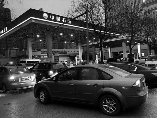 昨天下班后,加油的车在西影路一加油站排起了长队