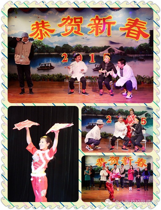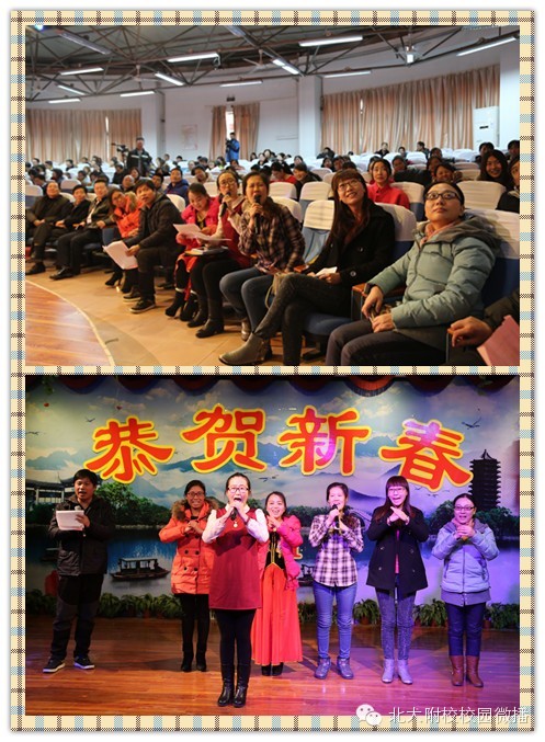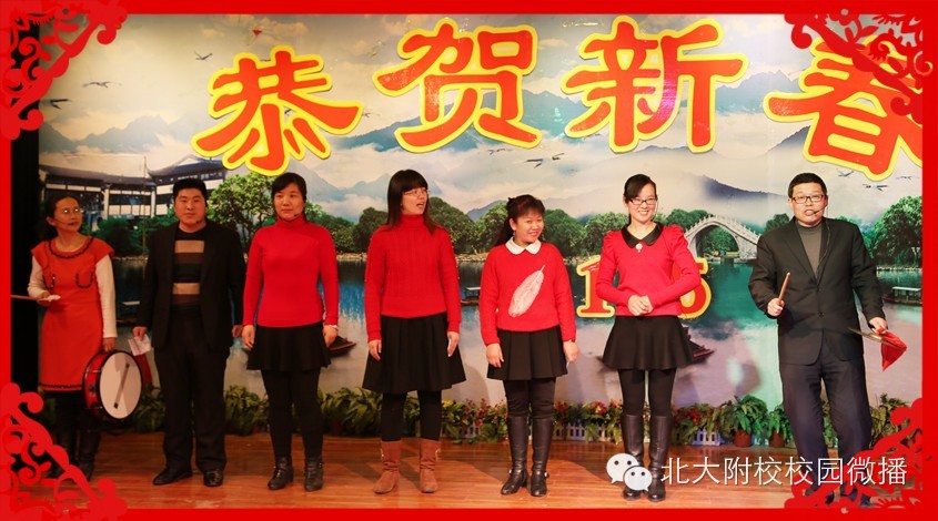 2015年2月27日,正月初九,北大附属实验学校全体教职工欢聚一堂,教师群星云集,节目丰富多彩,互动紧凑热烈,现场喜气洋洋,一场“恭贺新春”团拜会开启了欢乐祥和的羊年之春。