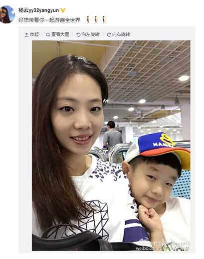 昨日,杨威妻子杨云在微博晒出爱子照片,还留言称,“好想带着你一起游遍全世界”。照片中,杨阳洋身穿白色半袖,戴着鸭舌帽,对镜头摆出搞怪姿势,还有与妈妈依偎在一起,露出傲娇表情的画面,模样十分可爱。