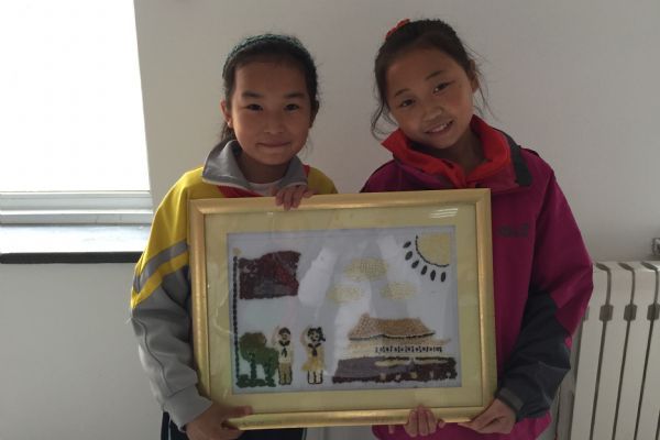 红豆、绿豆、黄豆、黑豆、芸豆等等这些普普通通的谷物,并不显眼,而万子营民族小学的师生们运用视觉语言,共同介入信息的交流,共享人类文化的资源,积极参与文化的传承,加强学生对本民族多元文化价值的认识和尊重,增强民族自豪感。在学校,通过”欢乐豆豆,五谷贴画社团活动的开展,引导学生感受五谷的美,了解五谷贴画的文化,同时培养学生丰富的联想能力。以天然的谷物杂粮和豆类为材料,通过粘、贴、拼、雕等手段,将它与其他辅助材料贴成山水、人物、花鸟、卡通等具象或抽象形象。在社团老师的带领下,学生们在活动中了解了谷物知识、学习了五谷贴画的创作方法,锻炼了细心与耐心,不断感受着五谷画色彩古朴纯真、装饰性强、丰富独特、令人愉悦的韵味。学生们在社团活动中大胆实践与创新,审美素养得到进步的提升,同时体会着我国民间优秀的传统艺术形式,曾强了民族自豪感。本次展览以“鱼”为题,进行主题创作,学生们不断创新,大胆实践。作品受到观展的师生一致的好评。